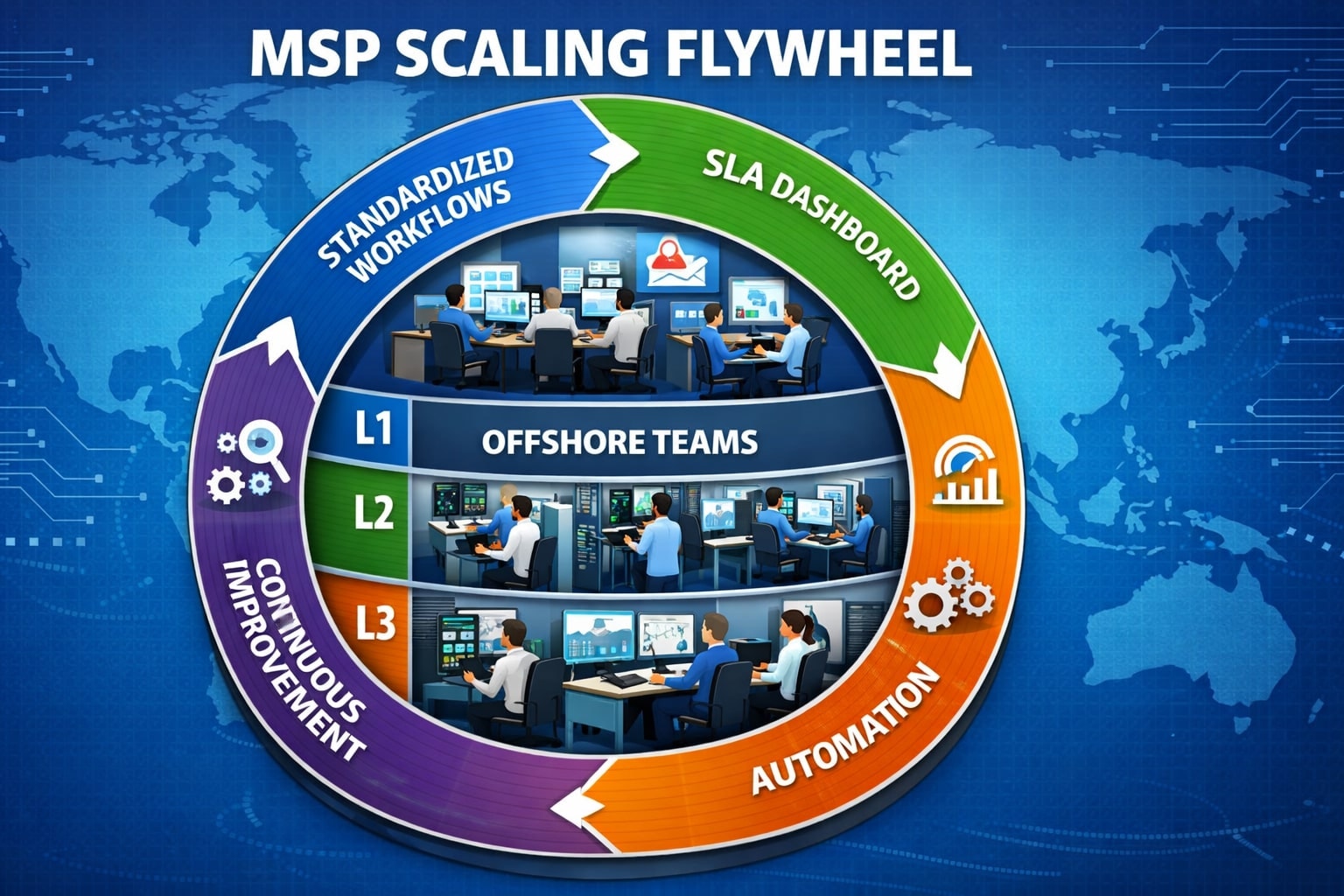 Proven frameworks for scaling MSP operations with offshore teams rely on standardizing service delivery, enforcing measurable SLAs, and using automation to reduce manual coordination. Offshore scale works when an MSP treats operations like a production system with clear inputs, repeatable workflows, and consistent quality gates. Scale breaks when offshore capacity is added without service definitions, escalation design, and end-to-end accountability.