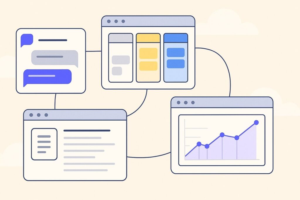 - Knowledge management – wikis, document hubs, and internal search to store institutional knowledge.